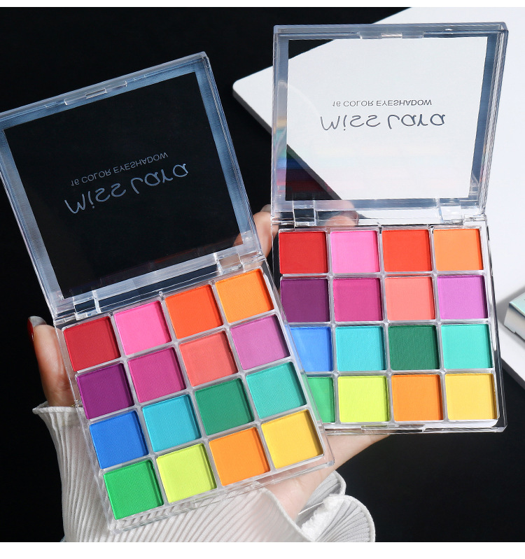 16 color eye shadow palette with shimmering pearlescent matte earth tones