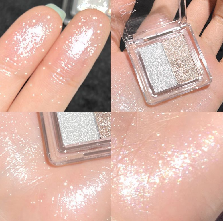 But wait, the real showstopper here is the "Tiny Sparkle" section! ✨ Imagine thousands of tiny, glistening diamonds compressed into eyeshadow pans. There's a silver sparkle that shines like moonlight reflecting off a frozen lake, a holographic shimmer that shifts colors as you move (it's like a mini rainbow on your eyes!), and a subtle, iridescent glitter that gives off a delicate, fairy-dust-like glow. These sparkles are so intense and pigmented—just one swipe, and your eyes instantly become the center of attention.
