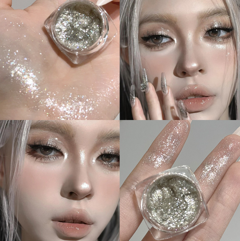 First off, feast your eyes on the colors! 👀 There's a soft, dreamy pink with iridescent sparkles that's like capturing a piece of a cotton - candy sky at sunset. 🌅 Then, a classic silver that shines so bright, it's like you've got little moons 🌙 nestled on your lids. There's also a cool, icy blue that gives off major winter wonderland vibes—think frost - kissed snowflakes ❄️ dancing on your eyes. And let's not forget the lavender shade, which is all kinds of ethereal, like something out of a fairy tale 🧚‍♀️. Plus, there's a multidimensional silver that looks like you've sprinkled stardust ✨ on your eyes, and another silver with a hint of rainbow reflect that's just chef's kiss—it catches the light from every angle and makes your eyes pop like crazy.