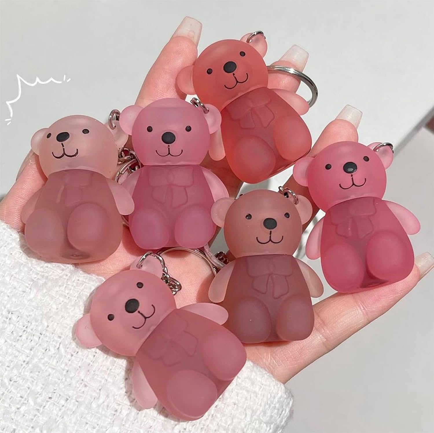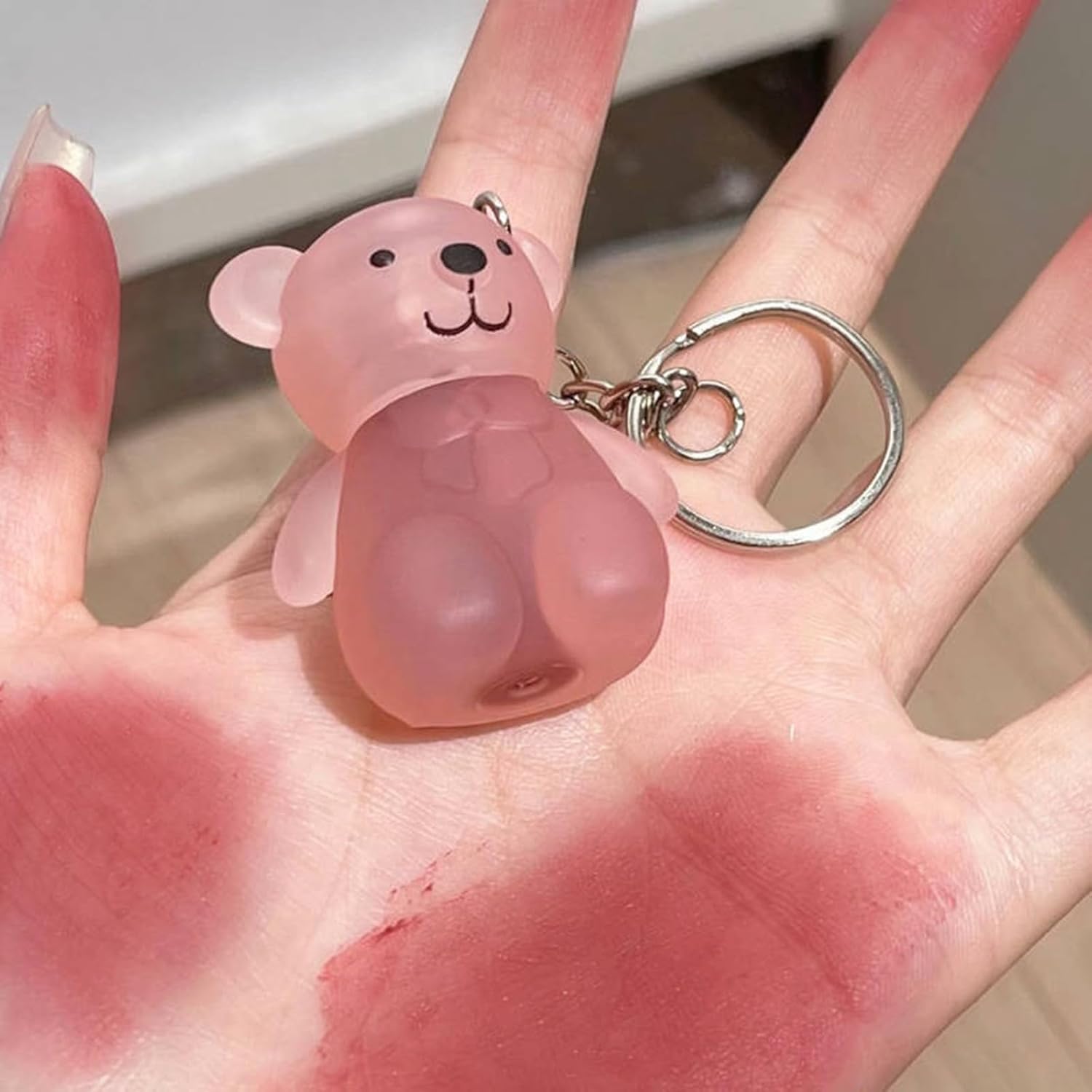 Cute Bear Matte Lip Mud Velvet Gray Pink Keychain Lipstick