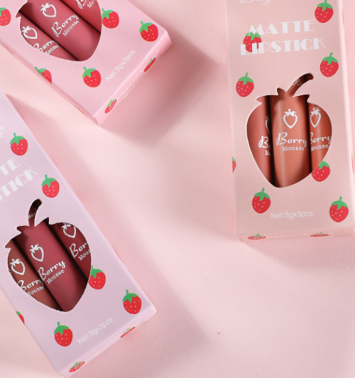 3-Piece Nude Strawberry Lip Glaze Matte Lipstick Set